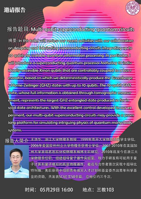 【学术报告】Multi-qubit superconducting quantum circuits
