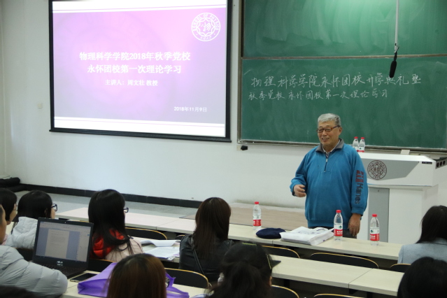 (通讯员 刘雨慧 刘宸垚)119日中午,物理科学学院永怀团校开学典礼暨秋季党校、永怀团校第一次理论学习于二主楼B105举行。物理科学学院退休教师周文壮应邀出席此次活动,学院各学生党支部支部委员全体预备党员,学院2018级全体新生团员参加
