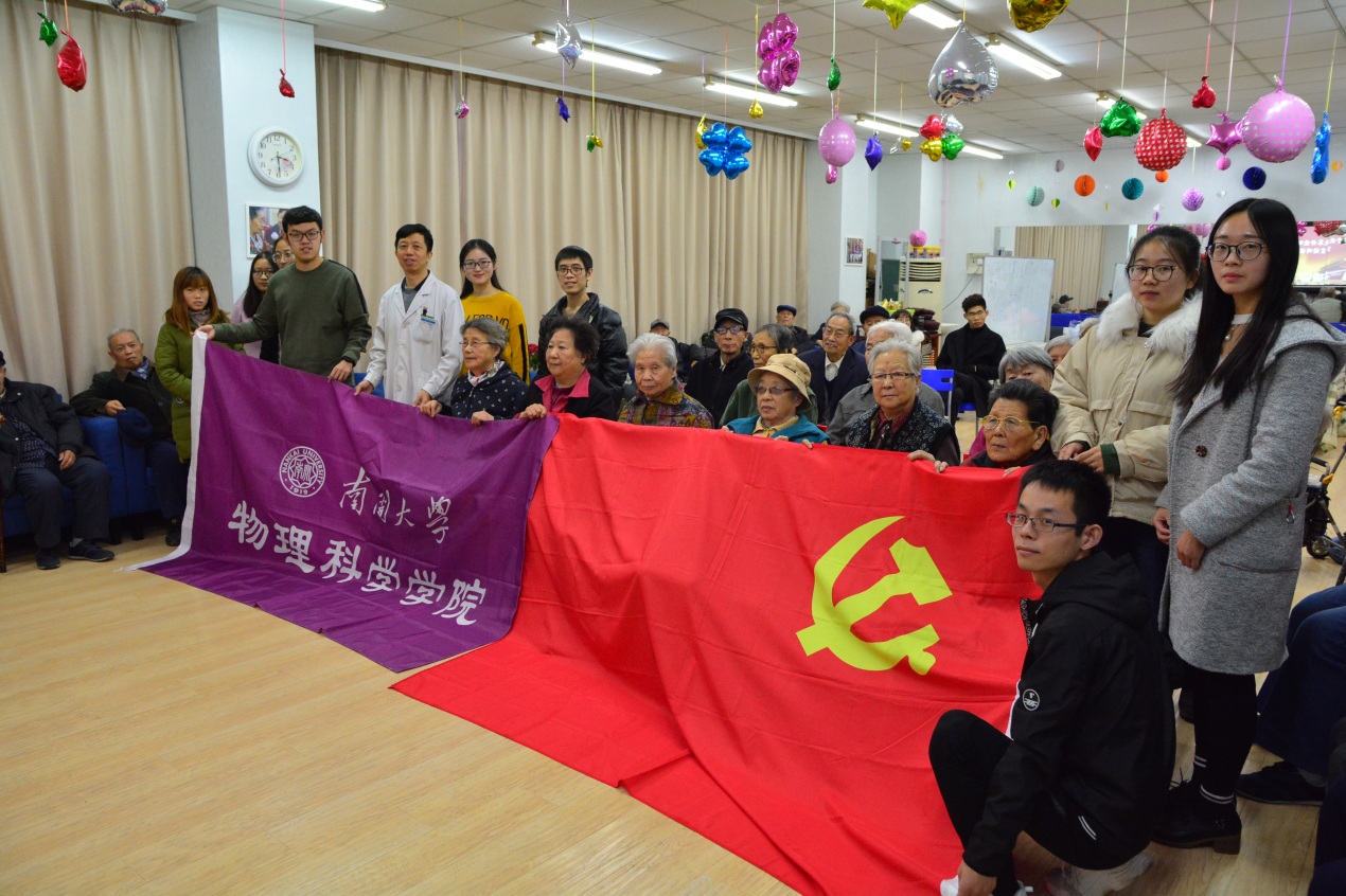 在开展创新党建百项活动中,物理科学学院2018级硕士第二党支部与天津市养老院老人党支部结成对子建立了长期有效的合作机制,学生党员与老人党员相互交流,相互学习,展开跨世纪的对话。