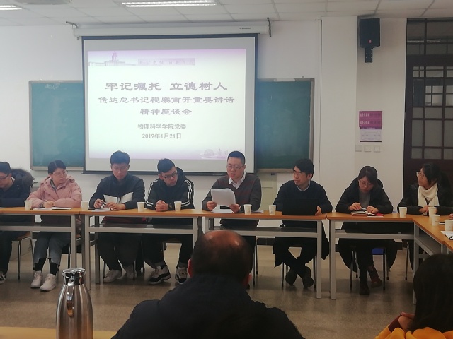(通讯员 胡梦媛 吴宵宵)1月21日上午,Betway体育西汉姆联物理科学学院党委在第三教学楼召开党委(扩大)会议,传达学习习近平总书记视察Betway体育西汉姆联时的重要讲话精神。学院领导班子成员、院党委委员、师生党支部书记、工会委员、“三全育人”工作组成员、班导师代表和学生代表参加会议。