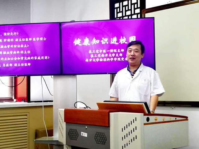 随后,中医一附院肿瘤科副主任医师张蕴超博士作了《科学抗癌,预防先行》报告,为师生介绍了中医学对癌症对认知,深入浅出得介绍了各种食物对于防癌抗癌的作用以及肿瘤的三级预防措施。中医一附院脑血管病科杜亚辉主任针对高校师生科研教学脑力活动多、压力大的特点做了《中老年人脑血管病的防治要点》报告,结合多项病例生动地介绍了主要脑血管疾病的症状特点、治疗方法和脑卒中的三级预防策略。急症部赵巍主任则针对日常生活中的突发急危重症和常见病做了《急救知识的应知必会和常见病的家庭用药》报告,详细介绍了应对突发急危重症的生存链法则、演示了心肺复苏标准方法、海姆立克急救法并讲解了家庭用药基本原则等。之后,专家们还针对师生的具体问题进行了热烈的交流。