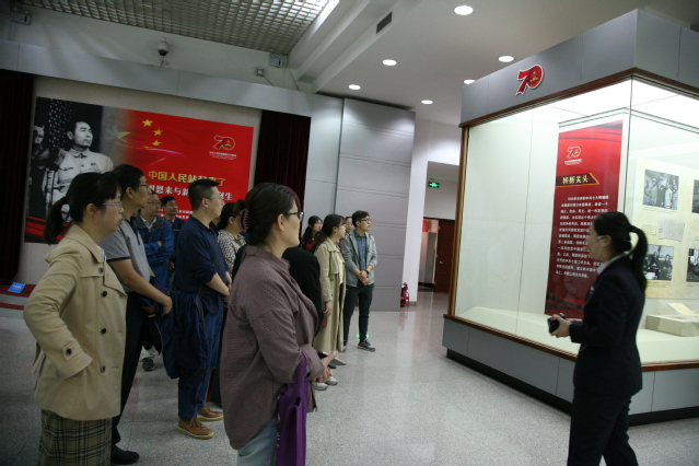 大家在讲解员的引导和生动讲解过程中,认真学习参观了“中国人民站起来了——周恩来与新中国的诞生”专题展览。展览分为伟大转折、共商国是、奠基伟业、伟大复兴四个部分,一幅幅珍贵的图片展示了周恩来从1945年抗战胜利后至1956年底社会主义改造完成、社会主义制度在我国确立这一特殊历史阶段的杰出贡献,特别是在历史转折关头,如重庆谈判、三大战役、中共七届二中全会、主持起草《共同纲领》、完成社会主义改造等重大事件中,周恩来发挥的独特作用。他为积极探索符合我国国情的社会主义建设道路、推进社会主义革命和建设事业倾注了大量心血,作出了奠基性贡献。