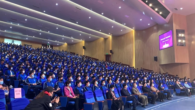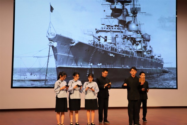 (通讯员王天皓)为进一步贯彻落实习近平总书记在党史学习教育动员大会上的重要讲话精神,深入学习宣传贯彻习近平总书记关于传承弘扬“两弹一星”精神的重要论述,在中国航天日即将到来之际,物理科学学院原创话剧《永怀》受武清区教育局邀请,于天和城实验中学报告厅进行武清区青少年党史学习教育专场展演。武清区教育局二级调研员胡鸿,团区委副书记王武亮,教育局综合素质科科长陈颖,天和城实验中学校长史学忠、党总支书记王玉红、副校长吕炜,全区各中学团组织负责人、青年团员和学生代表,天和城实验中学高一年级全体学生等近千人观看演出。