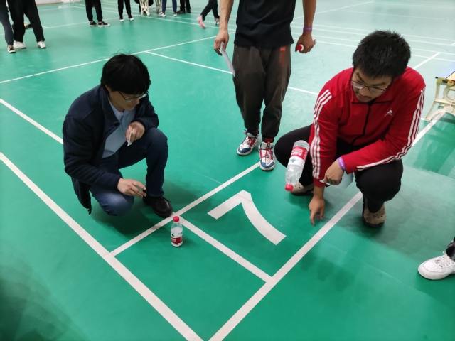本次趣味运动会共12个项目,包括三人四足跑、指压板跳绳作战、乒乓球接力等5个集体项目,以及水瓶挑战、乒乓球“筷”运、纸飞机大赛等7个单人项目,活动项目融入物理特色元素,具有学科特色。其中,在“水瓶挑战”环节,大家调整水量,控制水瓶重心,通过水瓶抛立、推水瓶等方式接续进行挑战,每一次水瓶的稳稳落下都伴随着同学们的欢呼和后续同学的跃跃欲试。赛场上口号声、加油声与欢笑声此起彼伏,呈现出一片热闹激烈的活跃氛围。