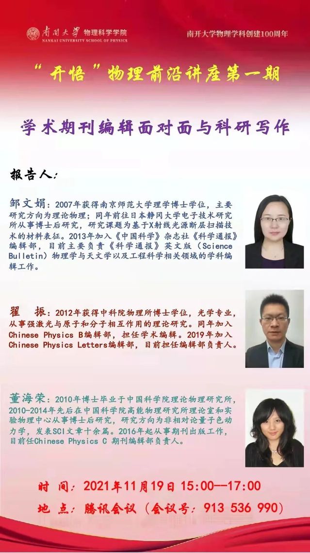 【“开悟”物理前沿讲座(第 1 期)】学术期刊编辑面对面与科研写作