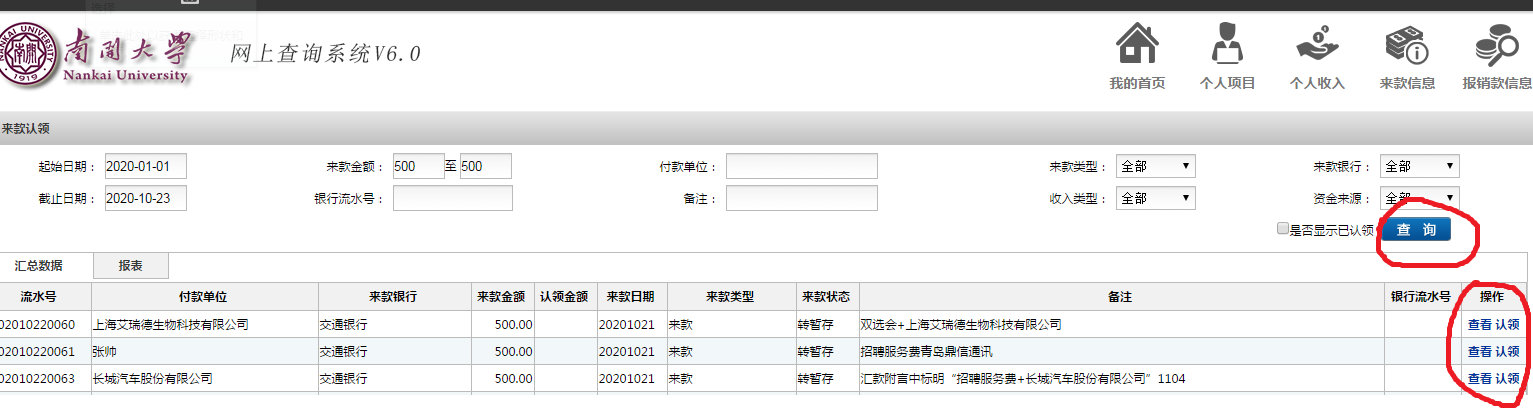 3、投递:持打印出的来款认领单及对公网银信息单,至财务处报账大厅进行投递或投递至学院财务室也可以。投递可咨询大厅人员。