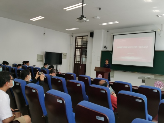 4月22日下午,物理科学学院党委召开2022年度党建工作推动部署会,院党委书记、副书记、专职组织员、各党支部书记(委员)参加会议。教育部第二批全国样板党支部电子信息与光学工程学院本科生第一党支部书记朱博晨,教育部第三批全国样板党支部统计与数据科学学院教工党支部书记杨建峰受邀分享了建设经验。院党委书记史永红主持会议并对学院2022年度党建重点工作进行了部署。
