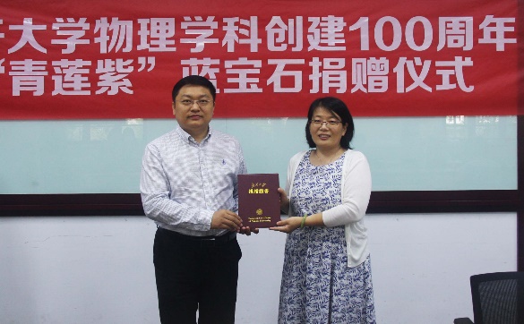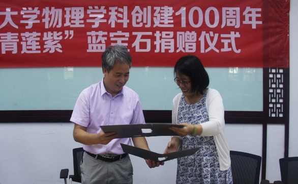【百年华诞献礼】Betway体育西汉姆联物理学科创建100周年“青莲紫”蓝宝石捐赠仪式在津举行