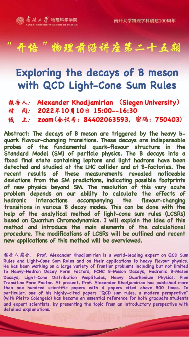 【“开悟”物理前沿讲座】(第 25 期)Exploring the decays of B meson with QCD Light-Cone Sun Rules