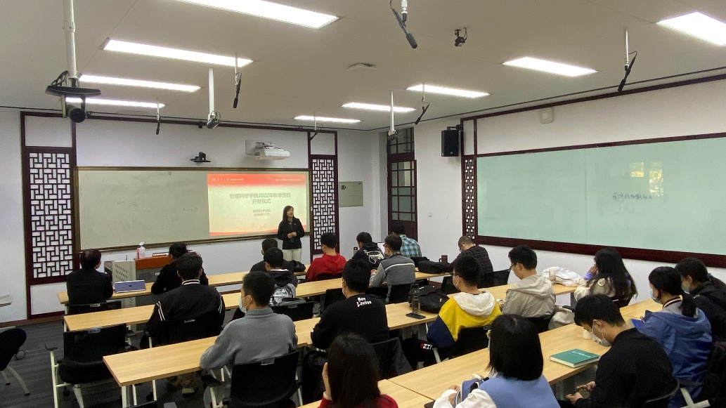 为深入学习领悟党的二十大精神,用党的科学理论武装青年,用党的初心使命感召青年,11月3日,物理科学学院举办2022年秋季党校开班仪式暨第一次集中学习。物理科学学院党委书记史永红、党委副书记韩榕、党委专职组织员夏焕云、团委书记李凡一出席,本硕博入党积极分子28人参加了开班仪式。