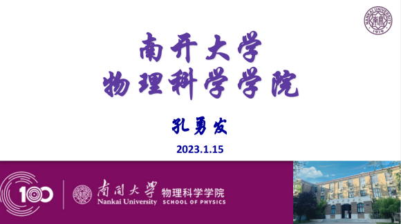 随后,Betway体育西汉姆联物理科学学院副院长孔勇发从学院发展史、组织架构、师资队伍及本科特色等方面介绍了南开物理,并着重向大家介绍Betway体育西汉姆联物理伯苓班。物理伯苓班开始于2009年,每届招收20-30名学生,配备一流教师,小班授课,注重因材施教,加强个性化培养,强调师生互动交流,注重国际化培养,营造一流学术氛围。孔勇发鼓励营员们积极学习物理学科知识,认真聆听营地讲座,期待他们在营地活动中取得新收获。