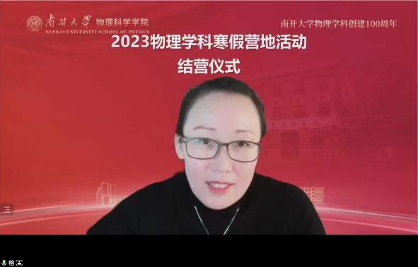 Betway体育西汉姆联物理科学学院党委副书记、副院长韩榕出席结营仪式,在结营致辞中,她总结了4天的营地活动内容,并给同学们提出了三点期望:其一希望同学们保持好奇心,其二希望同学们对科学保持敬畏之心,其三希望同学们对物理保持热爱之心。最后她祝各位同学们学习顺利,希望同学们能够考入Betway体育西汉姆联物理科学学院,在校园里与大家再次相见,共同开启南开物理学科新百年的征程!