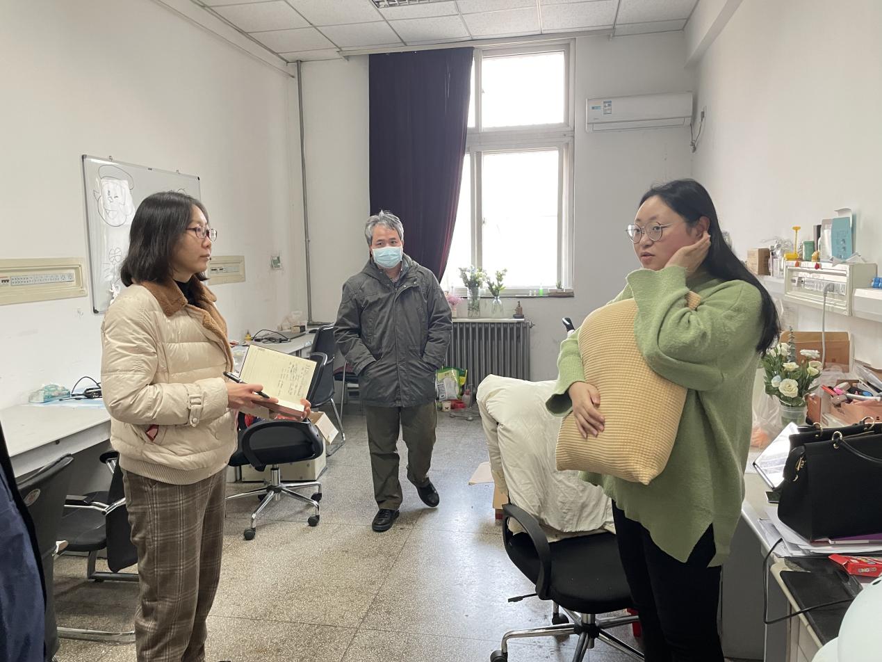 院领导在与师生交流的过程中了解各实验室安全工作的开展情况,指出需要整改的安全隐患,重点关注实验室用水用电安全、危险化学品安全、消防安全。