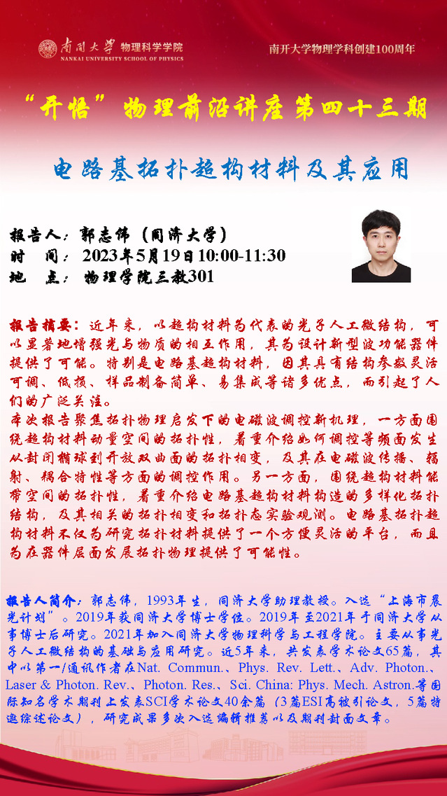 【“开悟”物理前沿讲座(第 43期)】电路基拓扑超结构材料及其应用