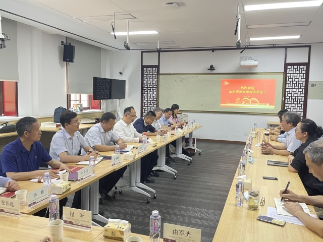(通讯员 赵玮璐)6月1日下午,山东师范大学副校长蔡阳健、科技处处长李登旺、物理与电子科学学院党委书记谢德仁以及班子成员、科室干部一行12人来我校物理科学学院进行访问交流,院长张国权、院班子成员以及办公室干部参与座谈交流。