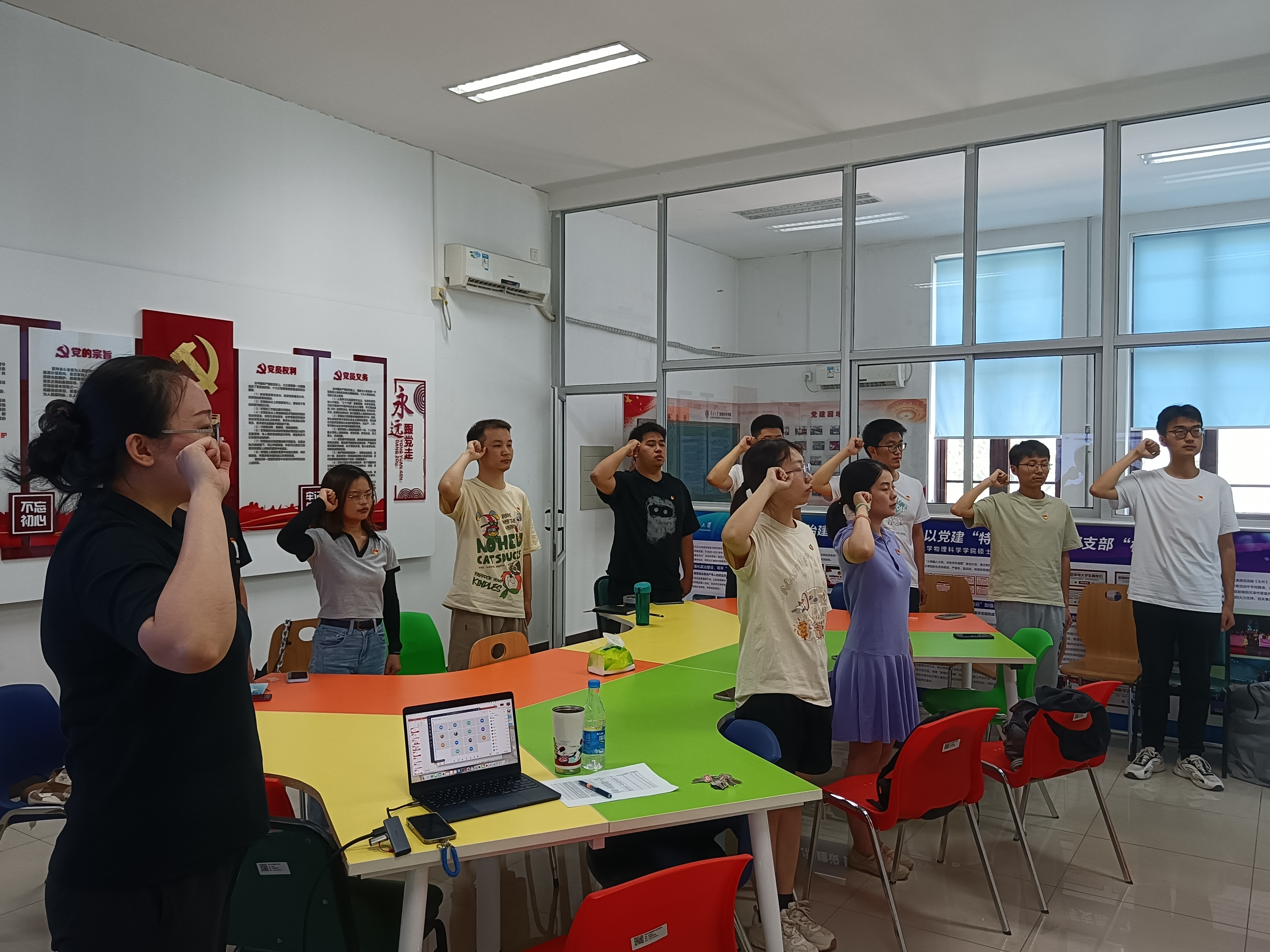 (通讯员 吴宵宵)7月1日上午,在中国共产党102岁生日之际,物理科学学院新老党员同上一节党课。物理科学学院党委副书记、副院长韩榕为同学们主讲,学院全体新发展党员、物理科学学院硕士第三、第五党支部全体党员同学参加。