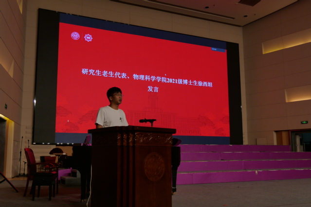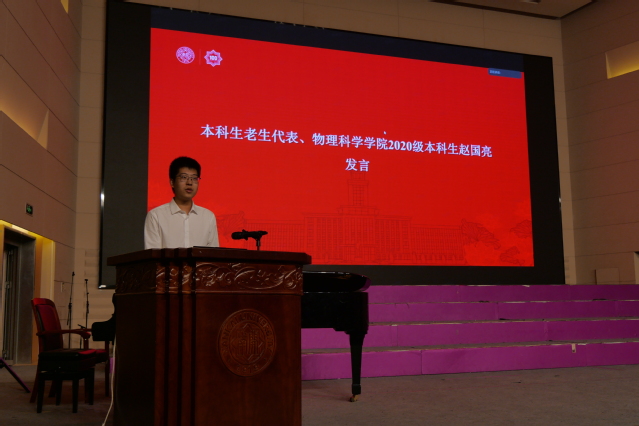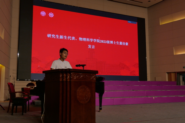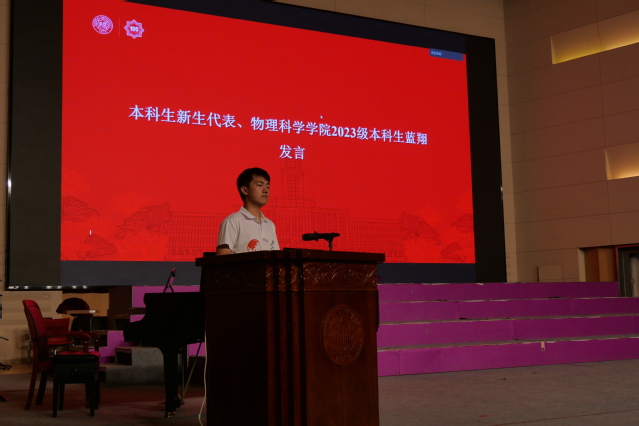 研究生新生代表、2023级光学专业董佳豪回顾了南开物理给予他本科四年的成长与思考,如今在新的起点上,他将继续牢记公能校训,学习南开物理学长郭永怀先生科研报国精神,锐意进取、开拓创新,力争在中华民族伟大复兴的征程上贡献南开物理人的一份贡献。本科生新生代表、2023级本科生蓝翔表达了要与同学们一道,在南开园中找准定位、坚定目标、刻苦学习,努力成为一名有自信、有思想、有担当的南开物理人。