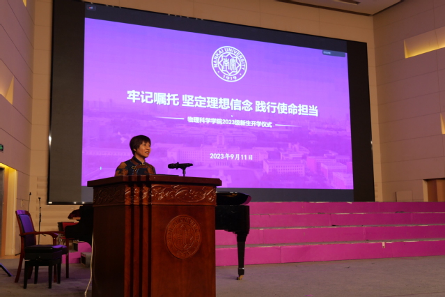 9月11日,物理科学学院2023级迎新大会于田家炳音乐厅举行。学院领导、新生班导师、全体本硕博新生参加活动。大会由学院党委副书记、副院长韩榕主持。