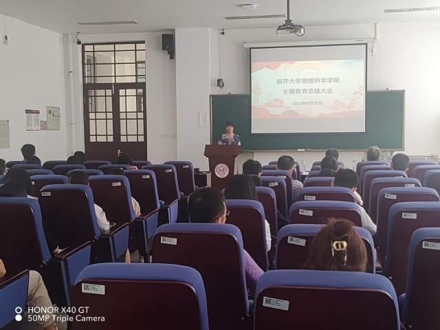 首先,史永红书记代表学院介绍此次主题教育工作开展情况。史永红书记从学院开展主题教育的主要做法、取得成效、下一步工作思路和改进措施三个方面进行总结。她指出,此次主题教育开展以来,按照中央统一部署,在中央第七巡回指导组的精心指导下,物理科学学院紧紧围绕学习贯彻习近平新时代中国特色社会主义思想这一主线,在全院各级党组织和党员干部中,深入开展主题教育,凝心聚魂,取得了明显的成效。主要体现在以下四个方面:学科建设和基础研究取得新进展;拔尖创新人才培养取得新突破;“三全育人”工作再上新台阶;师德师风和学术诚信教育营造新氛围。