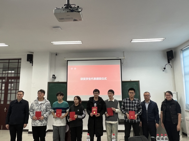 典礼伊始,韩榕介绍了2022-2023 学年度学院开展各类奖助评优工作的总体情况,李勇男宣读了2023年物理科学学院学生表彰决定,充分肯定了过去一年学生们取得的优异成绩,并勉励大家以获奖同学为榜样,奋发图强、追求卓越,不负时代、不负韶华。颁奖仪式环节,学院领导共同为获奖学生代表颁发了荣誉证书并合影留念。