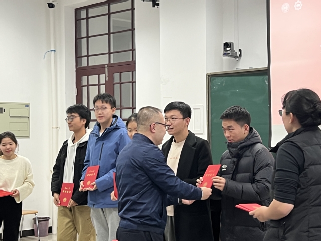 典礼伊始,韩榕介绍了2022-2023 学年度学院开展各类奖助评优工作的总体情况,李勇男宣读了2023年物理科学学院学生表彰决定,充分肯定了过去一年学生们取得的优异成绩,并勉励大家以获奖同学为榜样,奋发图强、追求卓越,不负时代、不负韶华。颁奖仪式环节,学院领导共同为获奖学生代表颁发了荣誉证书并合影留念。