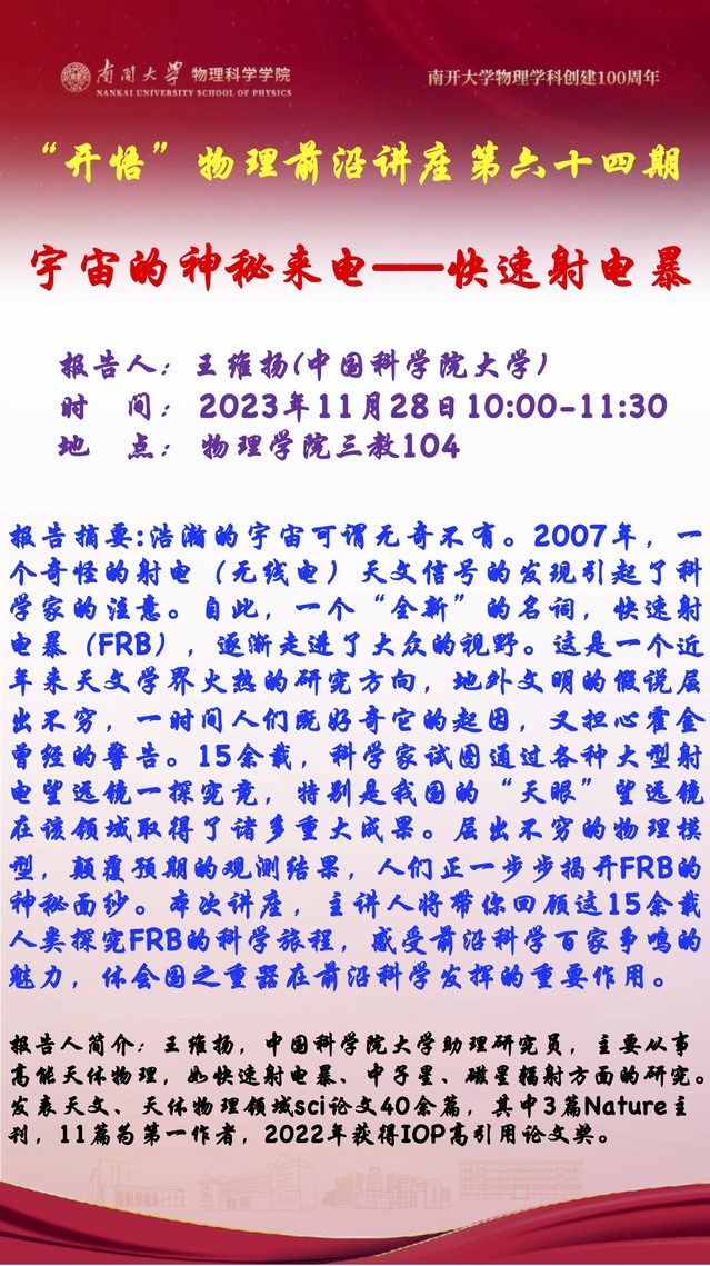 【“开悟”物理前沿讲座(第64期)】宇宙的神秘来电——快速射电暴