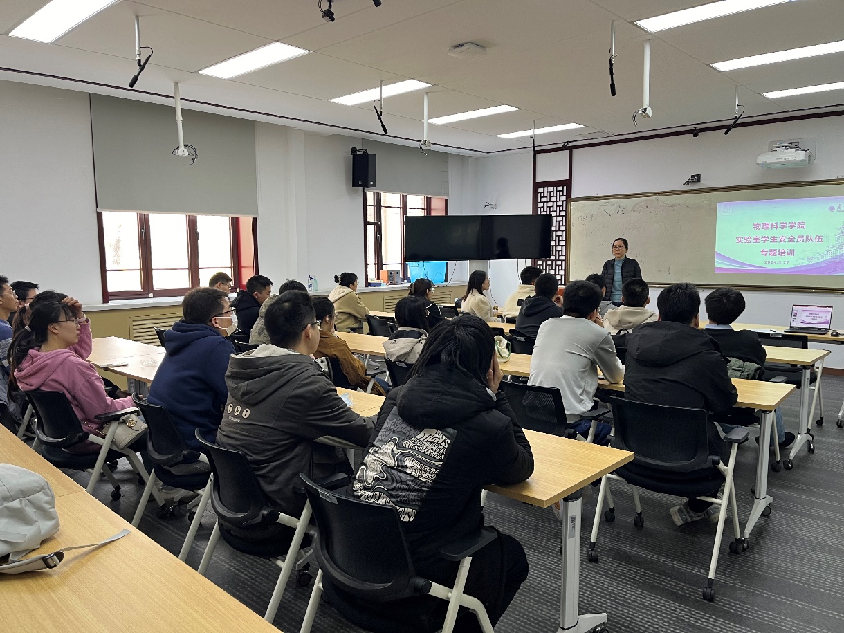 本学期初,物理科学学院组建了一支由各实验室优秀硕士、博士研究生组成的学生安全员队伍,旨在提升学生安全责任意识和应急处置能力,发挥学生在安全管理中的自我管理和监督作用,打通实验室安全管理“最后一公里”,健全实验室安全管理体系,构建学院群防群治安全网。