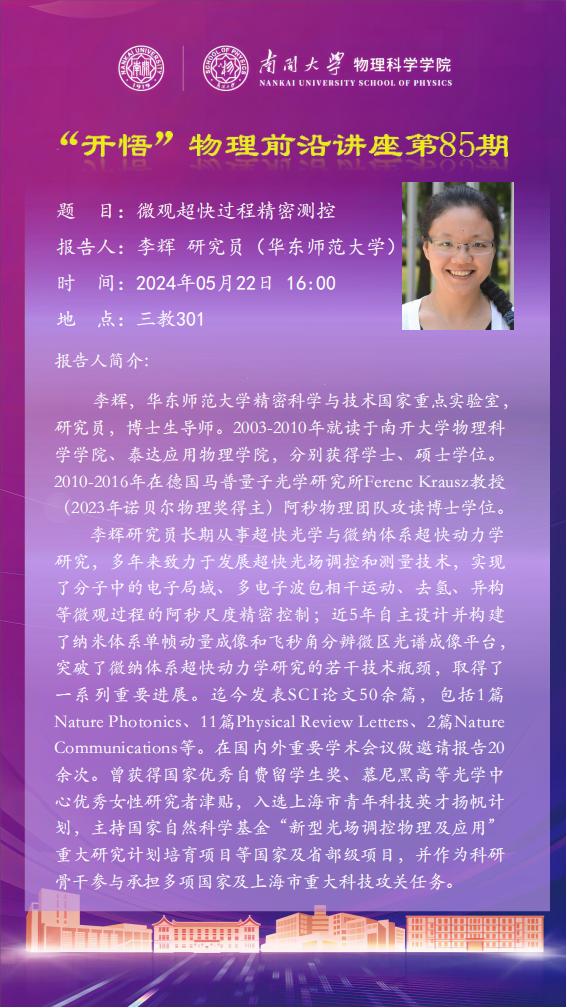 【“开悟”物理前沿讲座 (第85期)】微观超快过程精密测控