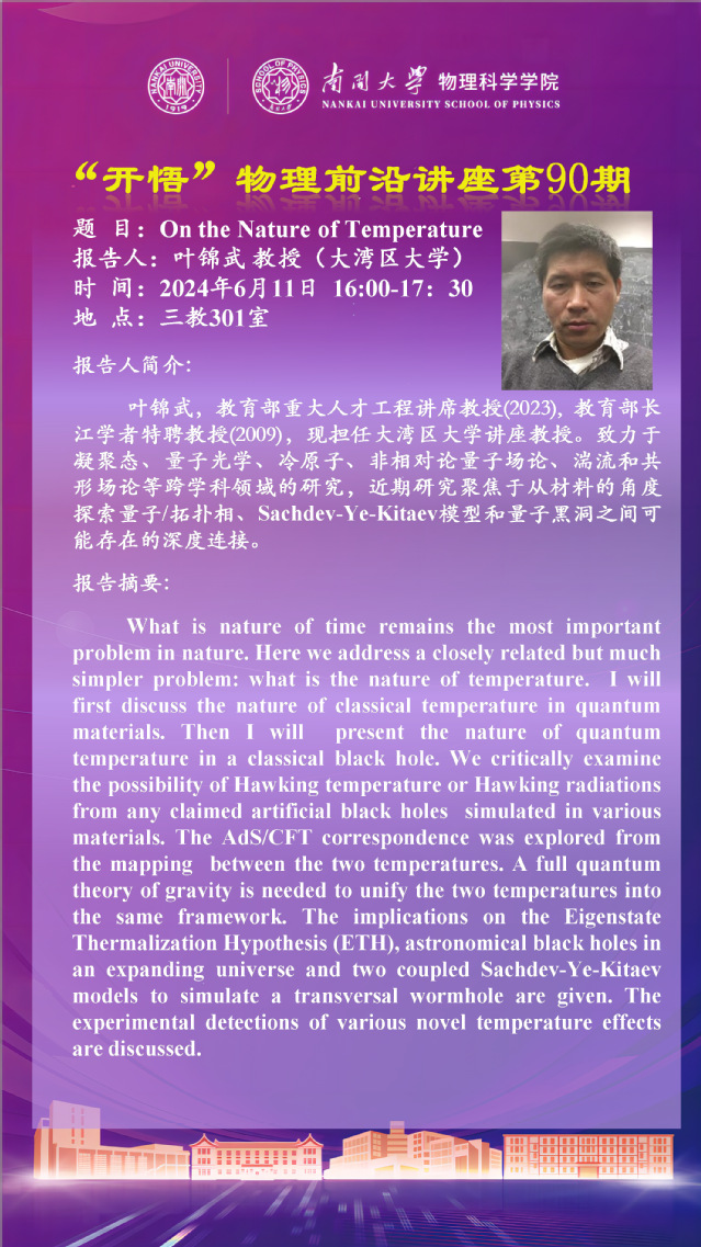 【“开悟”物理前沿讲座 (第90期)】On the Nature of Temperature