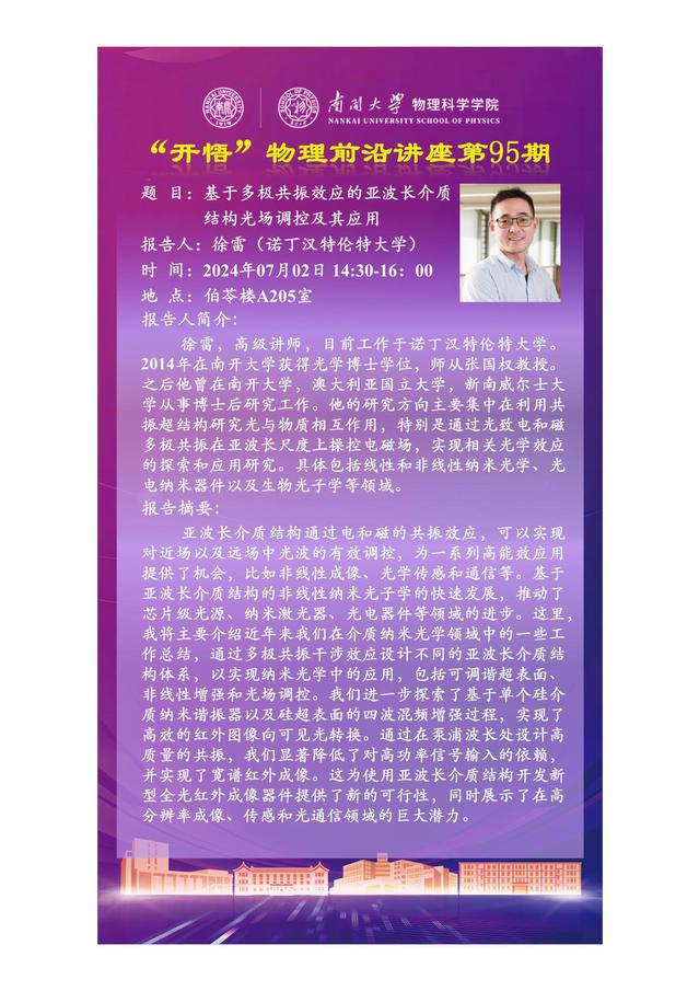 【“开悟”物理前沿讲座(第95期)】基于多级共振效应的亚波长介质结构光场调控及其应用