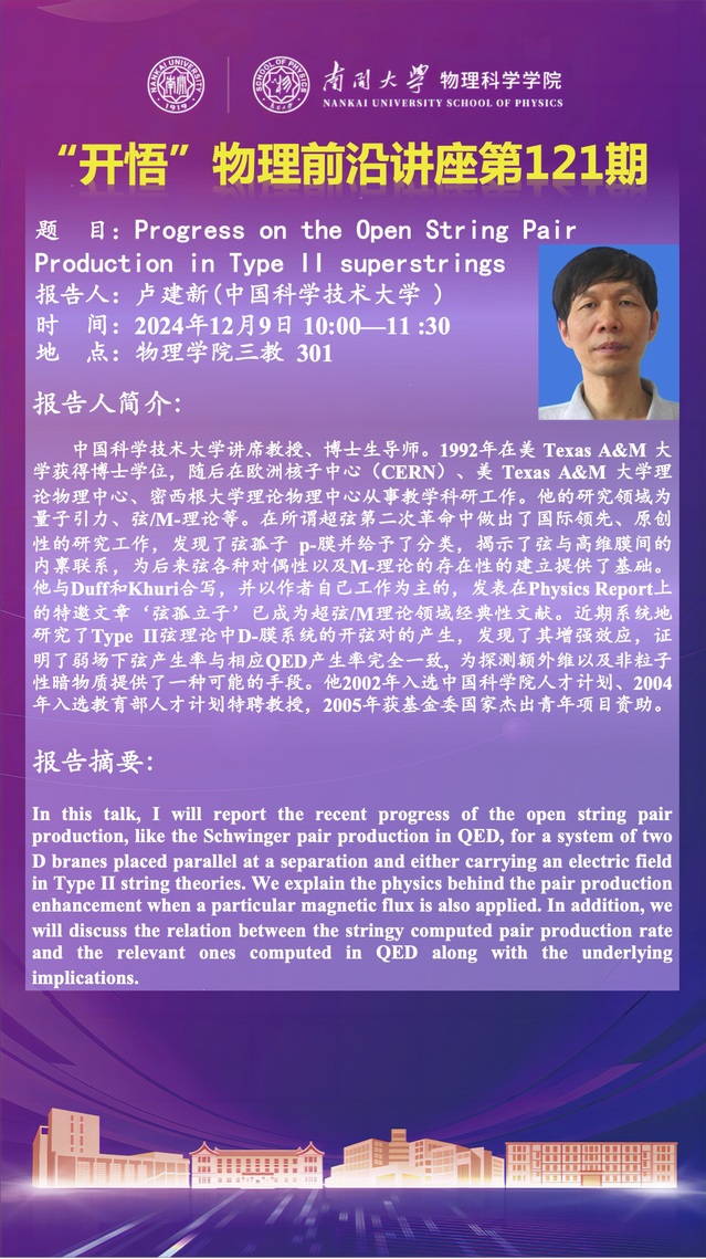 【“开悟”物理前沿讲座 (第121期)】Progress on the Open String Pair Production in Type II superstrings