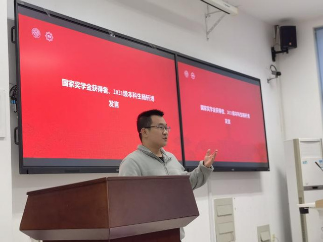 研究生获奖代表孔君和本科生获奖代表杨轩溥在现场同大家分享了在学习、科研生活中的经验与感悟,在坐得住科研冷板凳的同时,也要充分利用学院为大家提供的广阔平台,不断丰富充实自己的学识与见识,才能在科研的道路上走得更远。