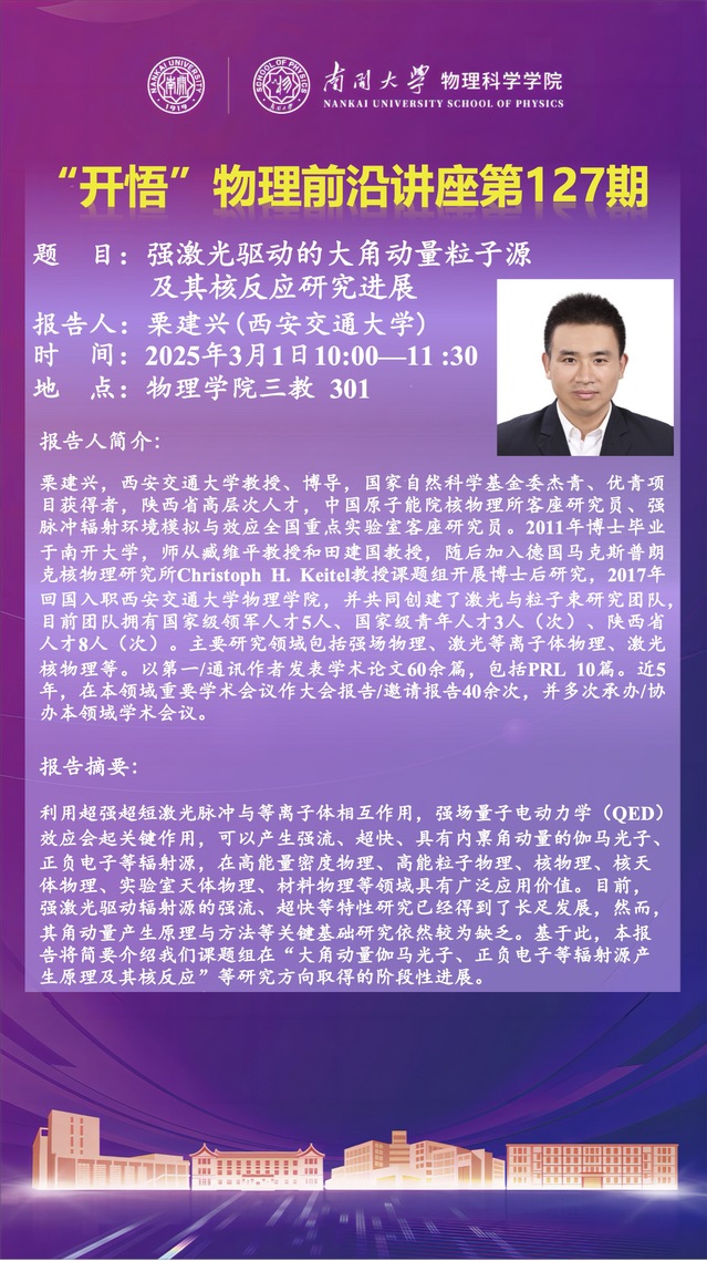 【“开悟”物理前沿讲座 (第127期)】强激光驱动的大角动量粒子源及其核反应研究进展
