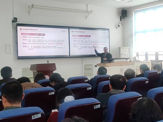 副院长李勇男就学院本科教学与迎评工作进行了详细部署说明,就整体工作的时间进度、关键评估要素、需要全体老师配合的相关内容进行详细讲解。