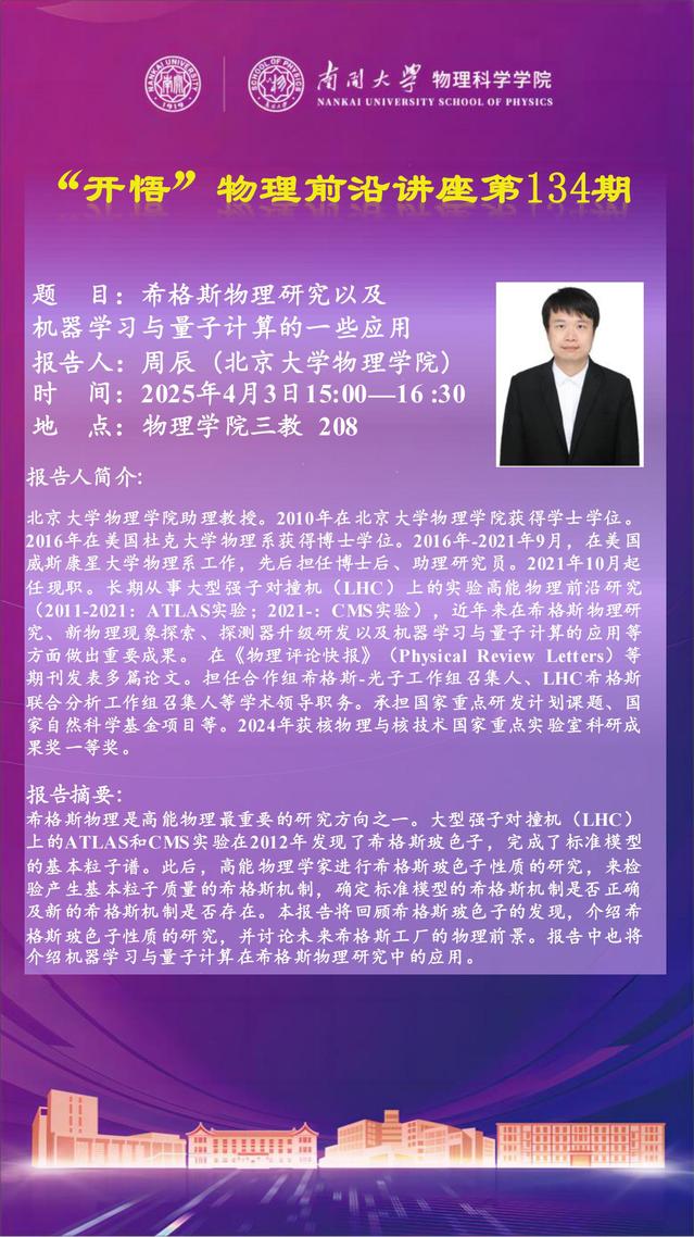 【“开悟” 物理前沿讲座 (第134期)】希格斯物理研究以及机器学习与量子计算的一些应用