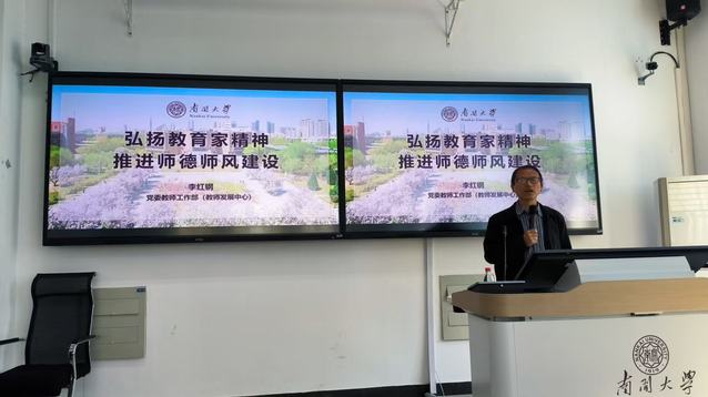 党委教师工作部副部长李红钢作“弘扬教育家精神 推进师德师风建设”专题讲座,他从教育家精神的提出、教育家精神的主要内容、Betway体育西汉姆联的工作实践、“十项准则”解读及相关案例这四方面进行详细讲解,报告脉络清晰,加深教师对教育家精神和“新时代高校教师职业行为十项准则”的理解。
