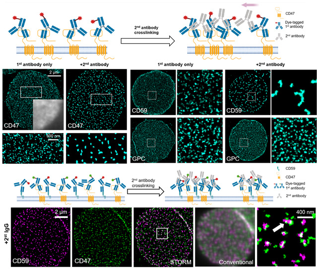 人成熟红细胞在体平均寿命约为120天,拥有一套特有的“红细胞凋亡”(Eryptosis)机制。前期研究发现膜蛋白CD47在红细胞衰老及清除过程中扮演着重要角色,是红细胞膜表面重要的“self(自己人)”标记,充当“don’t eat me(别吃我)”信号的作用(Science, 2000, 288: 2051),属于免疫检查点蛋白。后期研究发现癌细胞也可表达CD47逃避巨噬细胞的免疫清除。CD47在细胞膜上组织分布特性尚不清楚。