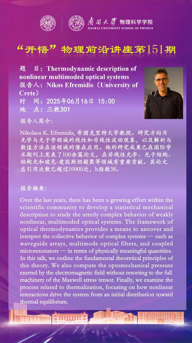 【“开悟”物理前沿讲座 (第151期)】Thermodynamic description of nonlinear multimoded optical systems