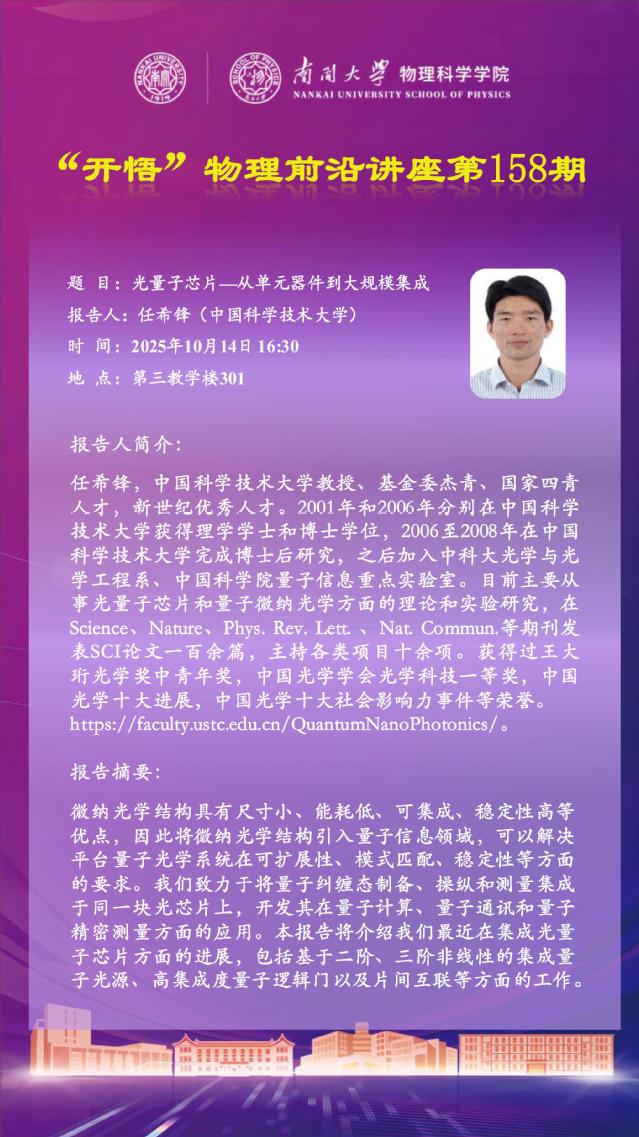 【“开悟” 物理前沿讲座 (第158期)】光量子芯片—从单元器件到大规模集成