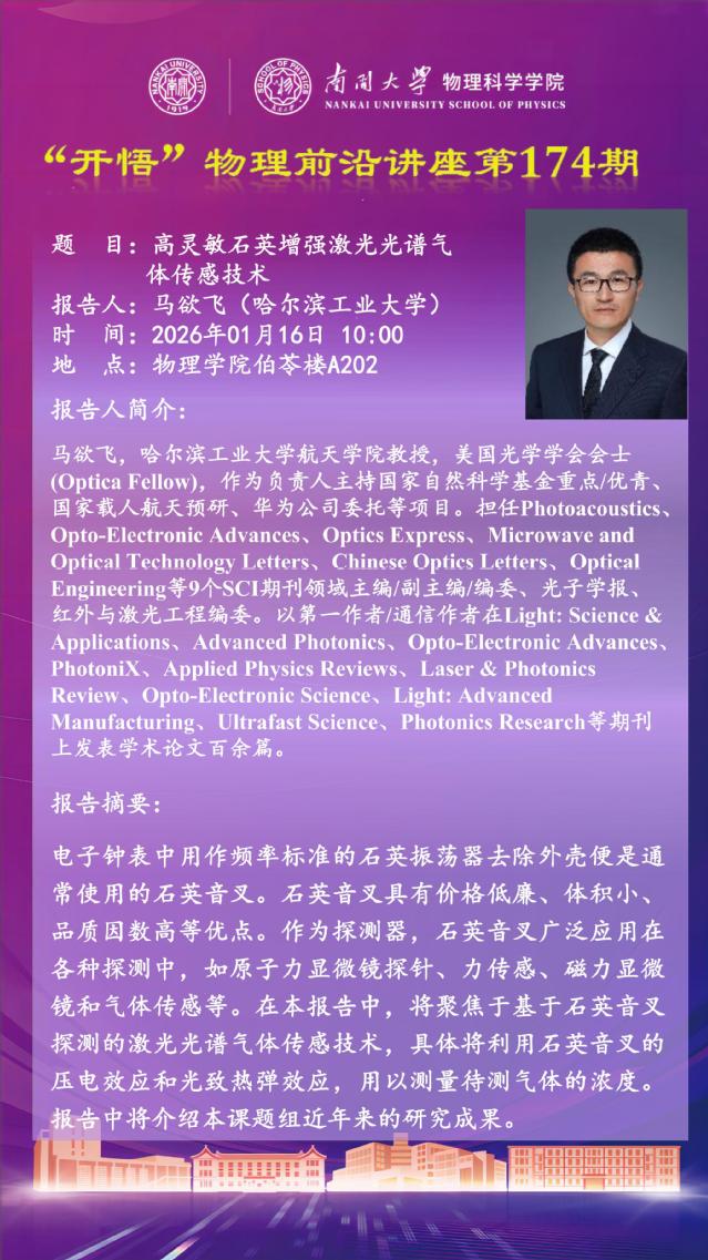 【“开悟” 物理前沿讲座 (第174期)】高灵敏石英增强激光光谱气体传感技术