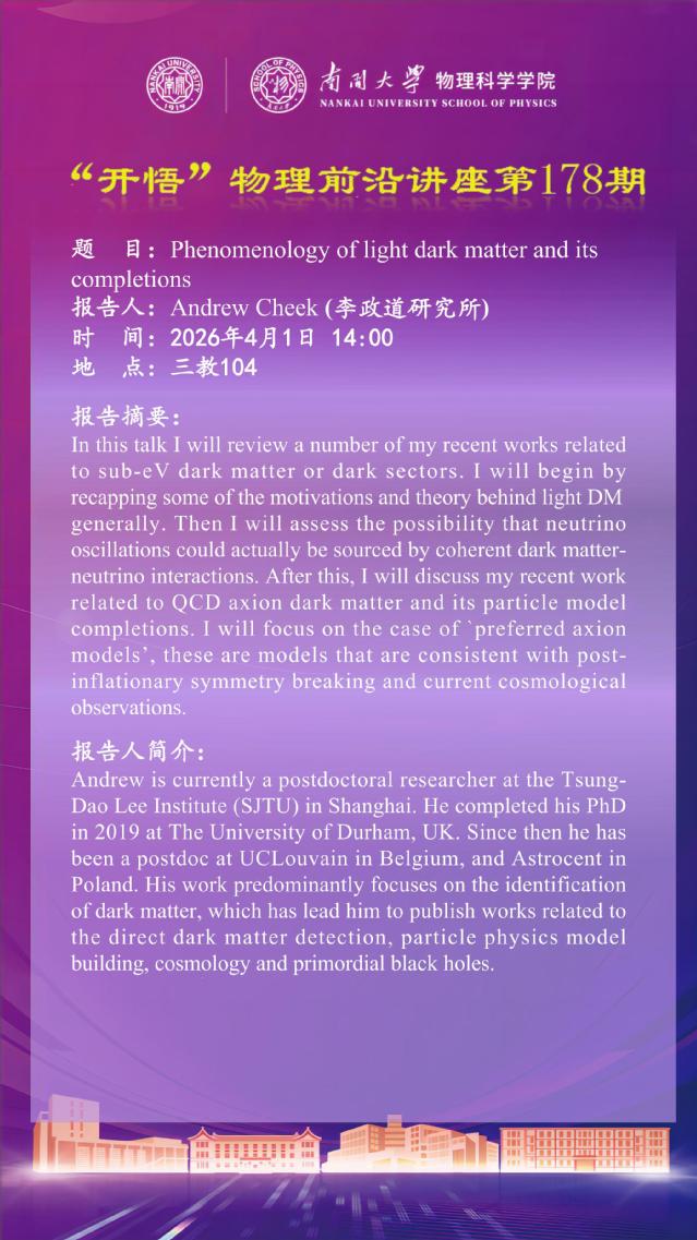 【“开悟” 物理前沿讲座 (第178期)】Phenomenology of light dark matter and its completions