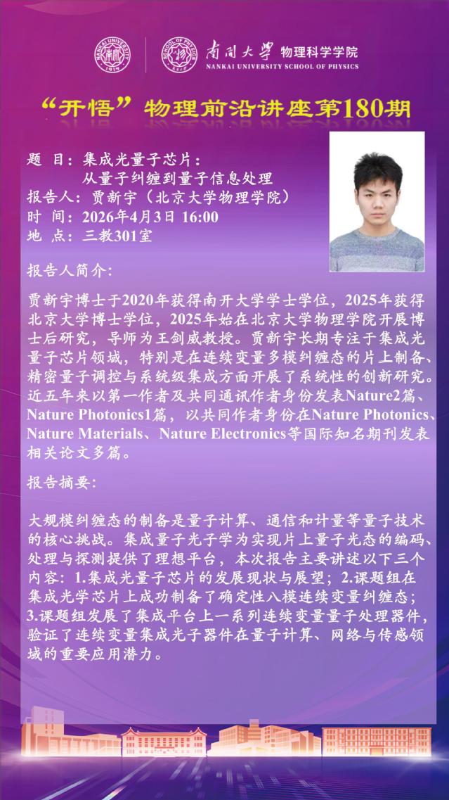 【“开悟” 物理前沿讲座 (第180期)】集成光量子芯片:从量子纠缠到量子信息处理