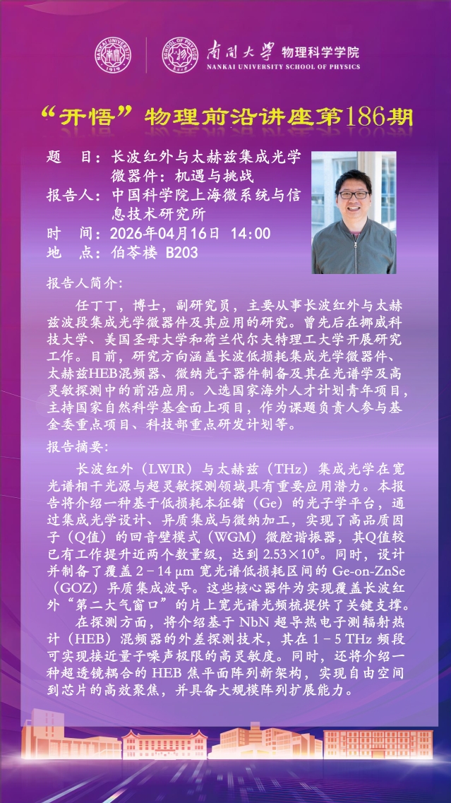 【“开悟” 物理前沿讲座 (第186期)】长波红外与太赫兹集成光学微器件:机遇与挑战