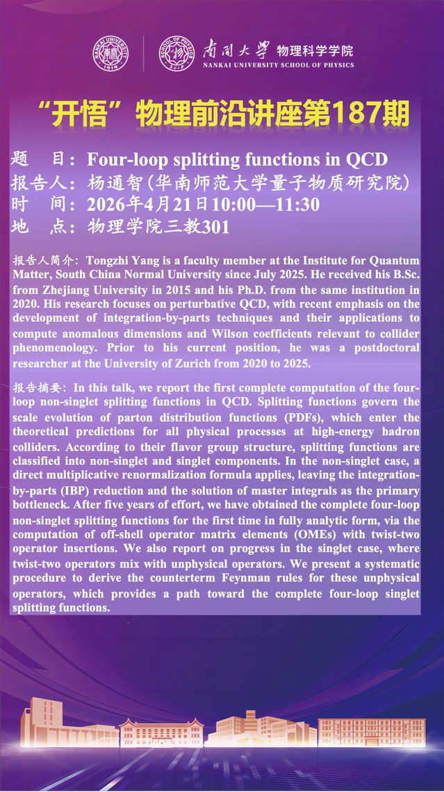 【“开悟” 物理前沿讲座 (第187期)】Four-loop splitting functions in QCD