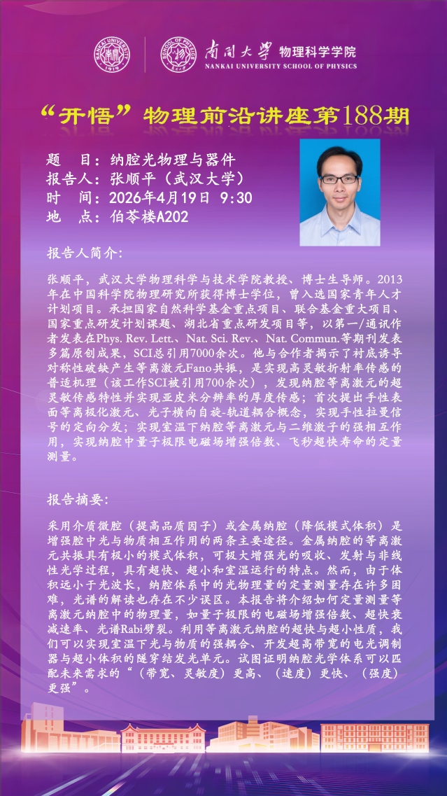 【“开悟” 物理前沿讲座 (第188期)】纳腔光物理与器件