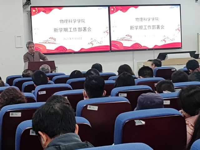 2025年11月6日,物理科学学院召开秋季学期工作部署会暨巡视整改工作推进会。会议深入学习贯彻党的二十届四中全会精神和全国教育大会精神,传达学校2025年秋季学期工作要求,通报学院“十四五”事业改革发展与校内巡视整改任务推进情况,部署推进2025年秋季学期重点工作。学院党委书记唐柏权主持会议并讲话,院长张国权及各位分管副院长作专题部署,学院全体教职工参加会议。
